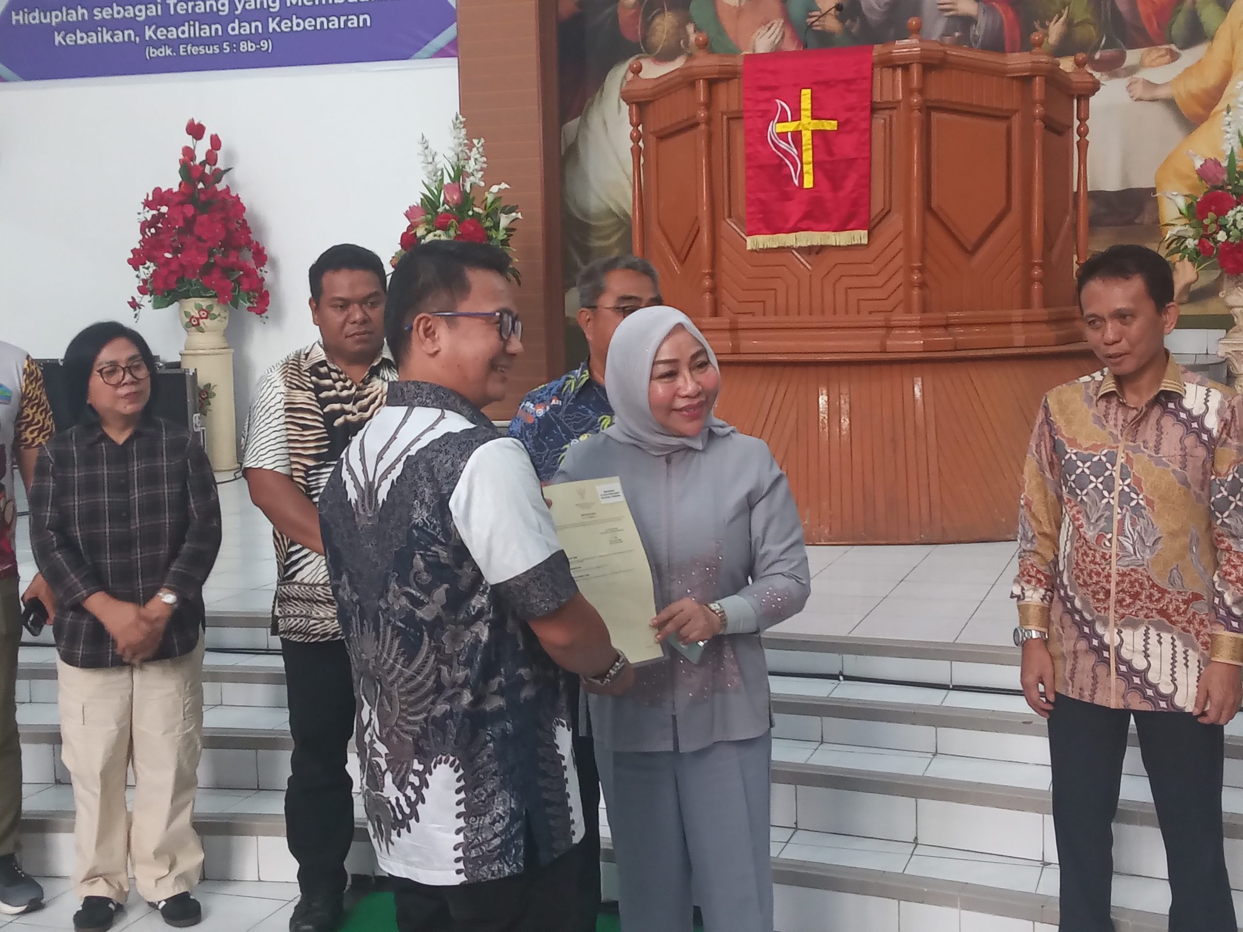 MINUT, tayangmanado.com – Kantor Badan Pertanahan Nasional (BPN) Minahasa Utara (Minut) menyalurkan 420 sertipikat tanah program pendaftaran tanah sistematis lengkap (PTSL) di GMIM Imanuel Talawaan, Minut, Jumat (13/6/2025). Adapun pembagiannya adalah untuk GMIM 1 sertipikat, Gereja Adven 1 sertipikat, Gereja Segala Bangsa 1 sertipikat, Balai desa 1 sertipikat, Kantor Desa 1 sertipikat, pekuburan desa 1 sertipikat, dan masyarakat umum 414 sertipikat.
