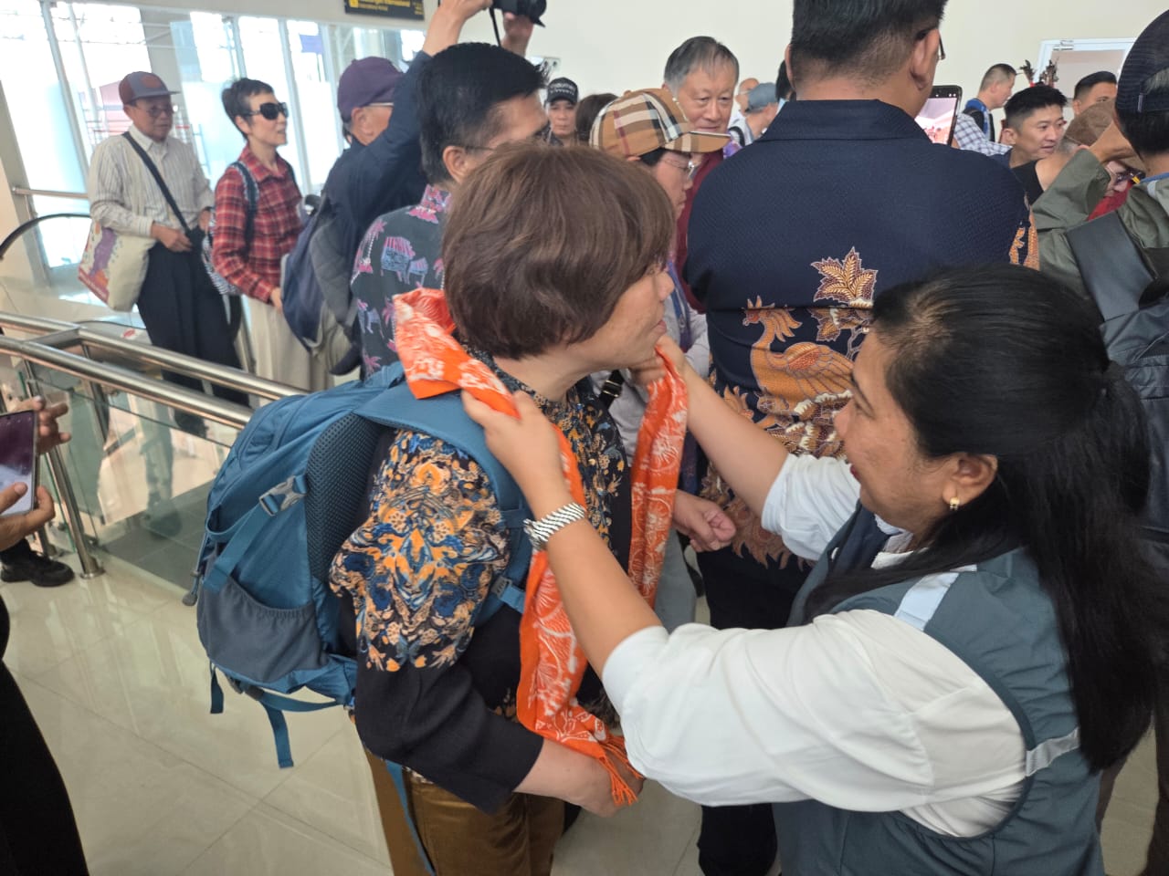 MANADO, tayangmanado.com – Sektor pariwisata Sulawesi Utara kembali menunjukkan geliat positif dengan ketambahan wisatawan asal china yang kali ini datang dari Bandara Internasional Shanghai Pudong, Shanghai. Wisatawan sebanyak 91 penumpang itu menggunakan maskapai penerbangan TransNusa dengan nomor penerbangan 8B-102. Kedatangan pesawat ini disambut dengan Water Salute sebagai penyambutan perdana turis asal Shanghai.