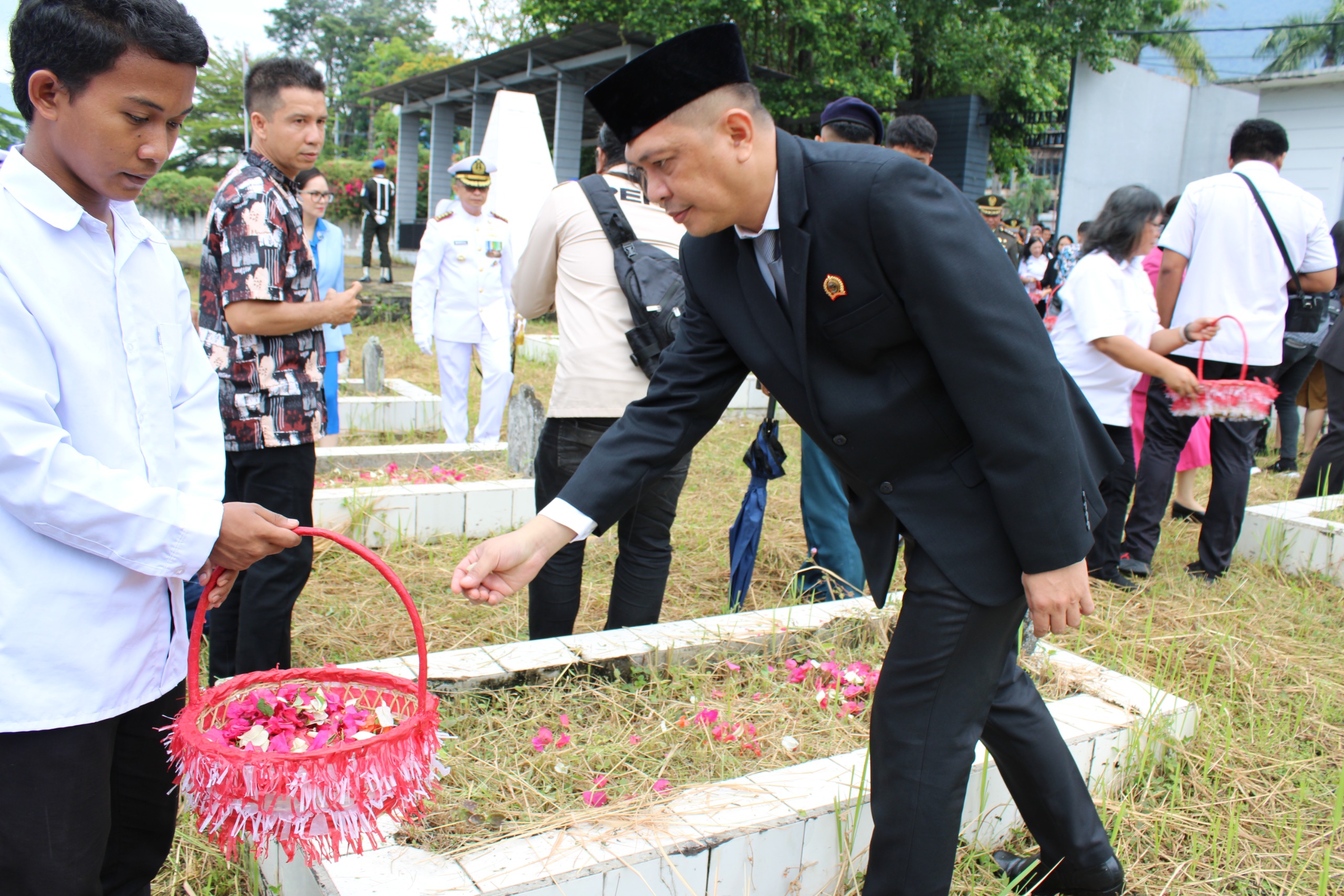 Steven O. K. Wowor terlihat meletakkan karangan bunga dan menaburkan bunga di pusara para pahlawan sebagai simbol penghormatan tertinggi atas pengorbanan mereka. Kegiatan ini merupakan bagian dari upaya kolektif Pemerintah Kota Bitung untuk menanamkan nilai-nilai kepahlawanan dan nasionalisme.
