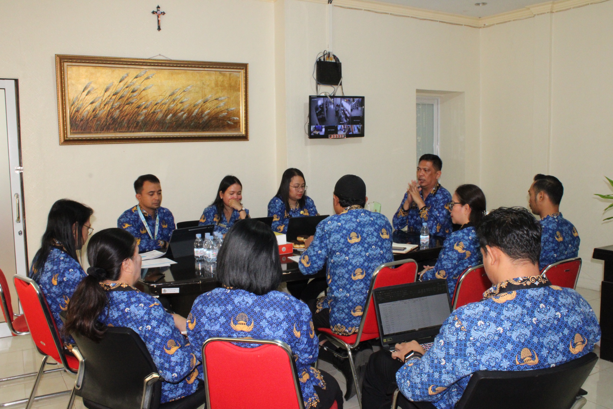 Rapat tersebut dipimpin langsung oleh Kepala Kantor Pertanahan Kota Bitung, Steven O. K. Wowor, S.ST., M.A.P., dan dihadiri oleh para Kepala Seksi serta jajaran pegawai terkait. Dalam rapat mingguan kali ini pembahasan terfokus pada kinerja pegawai dan target yang akan dicapai untuk minggu berjalan di tiap seksi.